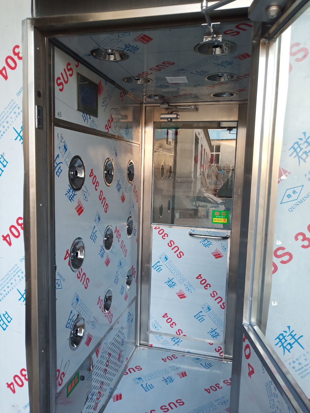 1.風淋室通電后,兩側門電子互鎖,一側門未完全關閉時,嚴禁強行打開另一側門。