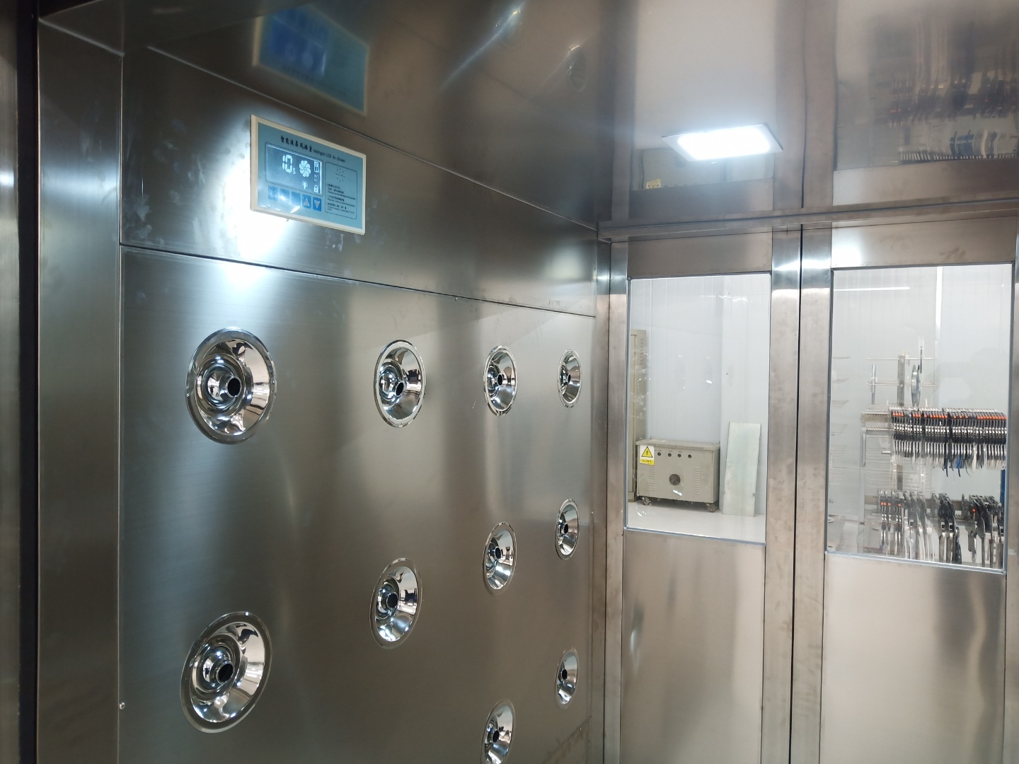 風(fēng)淋室是人進(jìn)入潔凈室所必需的通道,它可以減少進(jìn)出潔凈室所帶來的污染問題,減少由于人貨進(jìn)出帶來的大量塵埃粒子由潔凈室的入口處安裝功能齊全的“氣閘室”可以減少空氣污染微粒的數(shù)量,當(dāng)人貨通過風(fēng)淋室時,污染微粒被經(jīng)過高效過濾的高度潔凈空氣射掉,25m/s以上的高風(fēng)速確保了有效的噴射和飄移微粒經(jīng)過初效和高效兩級過濾器基本過濾掉。為了保持風(fēng)淋的安全使用,維持潔凈室環(huán)境的潔凈度。