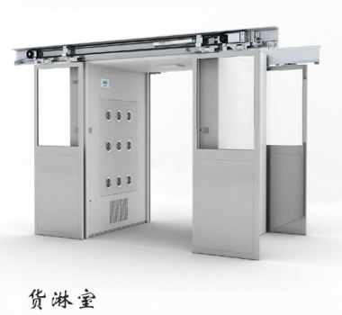貨淋室,固名思義,即為貨物專用的吹淋室,又稱之為貨淋通道,廣泛適用于電子,食品,包裝企業的物流通道處,對即將進入潔凈車間進行操作加工的貨物原材料及工具進行吹淋,達到過濾去除灰塵粒子,保證進入無塵車間的原材料潔凈的效果.因每個企業物流通道的現場尺寸以及需要吹淋的貨物原材料運輸方式大小的不同,故貨淋室沒有統一的標準,全部為非標產品.貨淋在功能上既有普通型貨淋室,又有紅外線感應語音提示型貨淋室,還有自動感應移門式貨淋室。